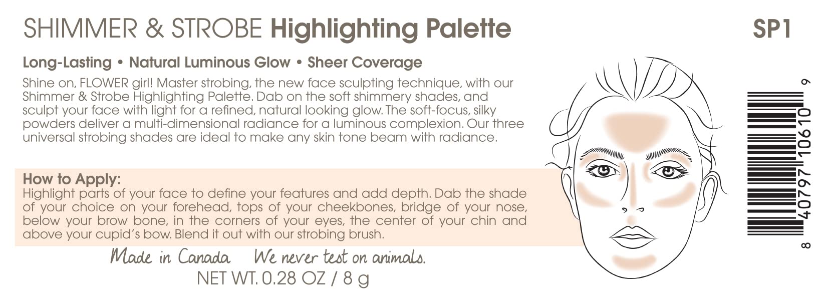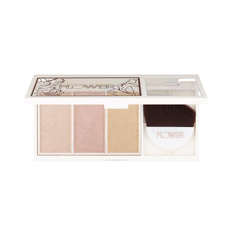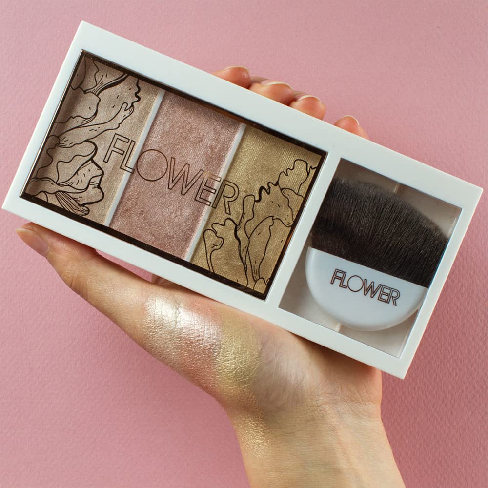 Shimmer & Strobe Highlighting Palette contains Flower Beauty's breakthrough strobing formula which is unique due to its' high water content. The creamy formula is triple pressed to remove excess water giving the powders a unique velvety lightweight and silky texture. The result is superb adherence to the face silky blendability and pure color intensity. The soft-focus silky powders deliver a multi-dimensional radiance for a luminous complexion. These three universal strobing shades are ideal to make any skin tone beam with radiance.Features : Soft satin finish powder highlighter for radiating glow Has blendable long lasting formula Buildable colors let you have total control on the kind of look you want to create Flower cosmetics are never tested on animalsAbout the Brand: Drew Barrymore's gift to everyone the brand Flower Beauty brings her message of empowerment and optimism with her own beauty collection that lets everyone achieve the effortless beauty look just like her.The brand offers luxurious range of cruelty-free cosmetics and professional tools that not only make life easier and more fun but look and feel amazing!