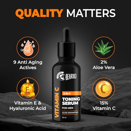 Beardo 15% Vitamin C Serum for Oily Skin | Vitamin C Face Serum for Men | Hyaluronic Acid and Vitamin E to Tone, Glow and Brighten Face | Non Irritating Face Serum with Vitamin C | Beginner Friendly | 30 ml