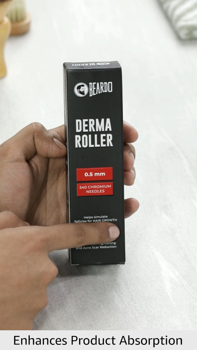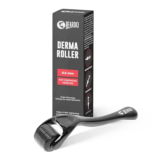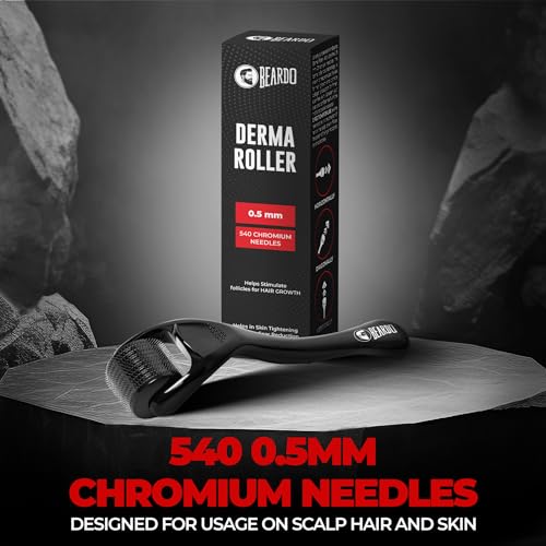 Beardo Derma Roller For Hair Growth 0.5 mm with 540 Chromium Needles | Reverse Signs of Aging | Dermaroller Increases Collagen production Repairs Damaged Hairs | For Hair Fall, Thickening