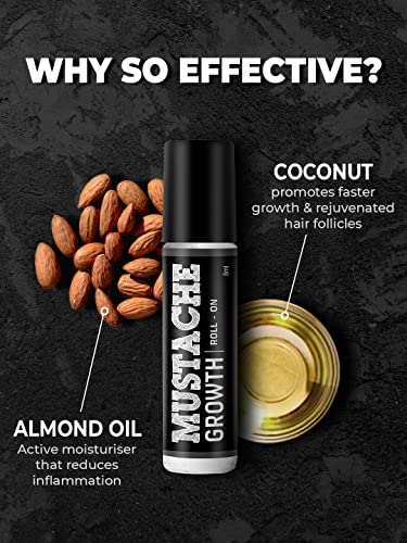 Beardo Mustache Growth Roll On 8 ml | Stimulates Hair follicles | Boosts Mustache Hair Growth | Goodness of Almond & Coconut Oil | Easy to use Roll on