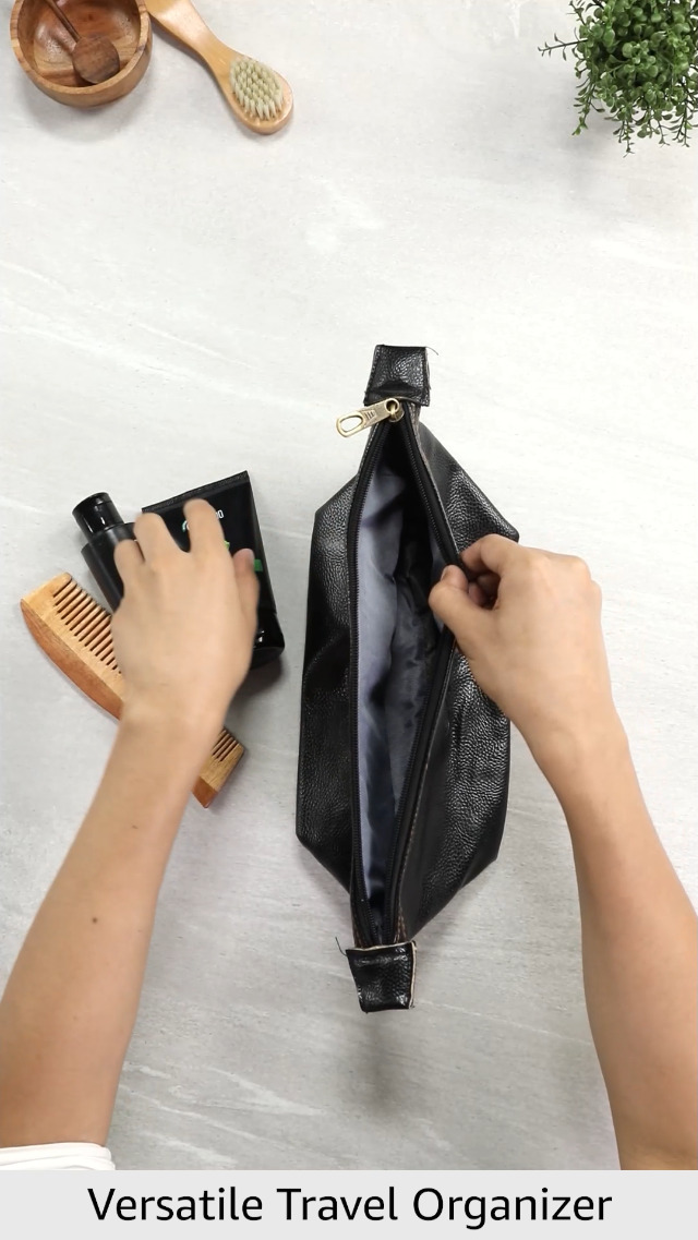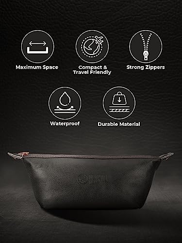 Beardo Travel Pouch for accessories. Ttylish Toiletry Organizer kit for Men & Women|. Made from Vegan Leather. It is a Waterproof Travel Kit that is ideal for travel essentials. Use it to carry trimmer Shaving & Makeup. Cosmetics and a lot more toiletries.