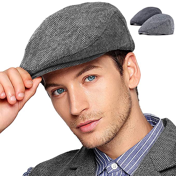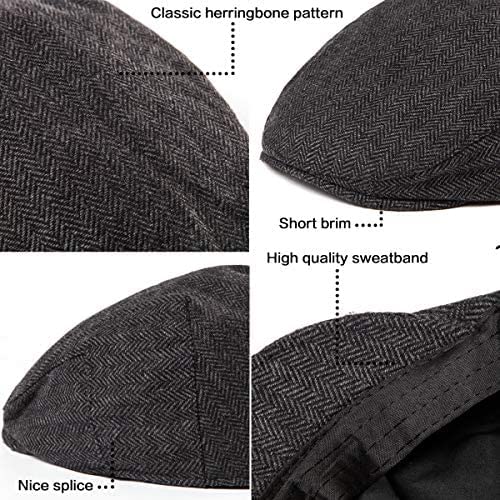 Beret/Golf/Flat Tweed Cap for Men-Pack of 1-Free Size-Black (Peaky Blenders), Grey & Black houndstooth Pattern, Free Size