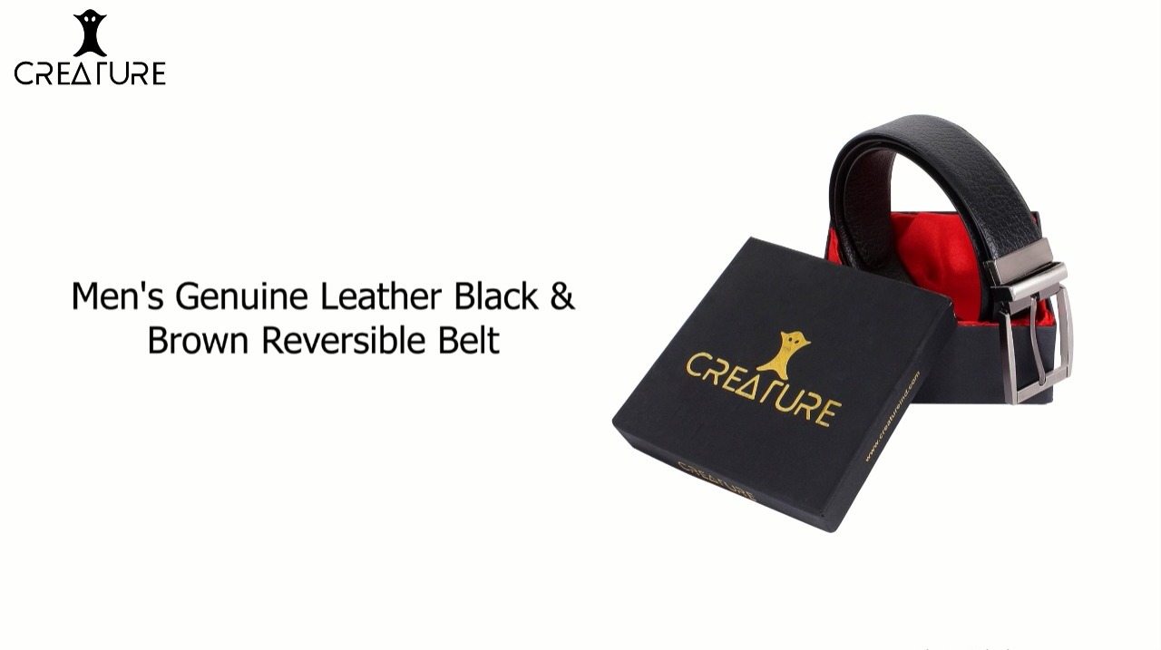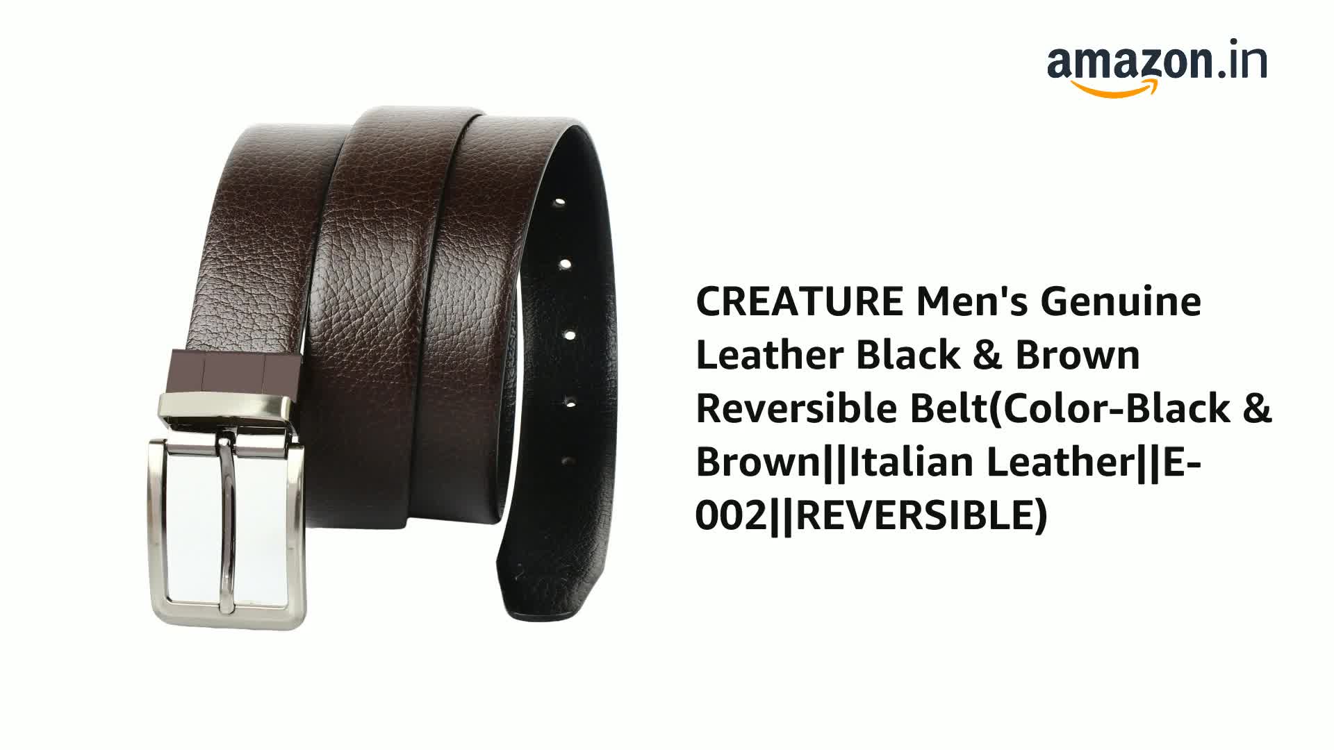 CREATURE Men's Genuine Leather Black Brown Reversible Belt(Colour-Black Brown Italian Leather E-002 REVERSIBLE)
