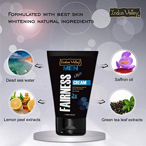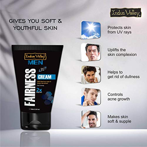 Indus Valley Men fairness cream is formulated using the best skin whitening natural ingredients which is a multi-purpose whitening cream for men. It is infused with the goodness of natural ingredients which makes it perfect for daily man's skincare routine. Mostly we are now exposed to harsh elements present in the environment which results in dark spots and dull skin. Keeping all the challenges men are facing on daily basis we have come up with this men's fairness cream which suits all skin types. Owing to its 2X Strong Effects it lightens skin tone reduces pigmentation spots and visible signs of aging. Also this fairness cream is specially formulated for men's tough skin and is non-greasy. It is very effective in reducing skin-related problems like pimples dull skin hyper-pigmentation dark spots uneven skin tone etc. Our fairness cream for men also protects from the UV rays and minimizes melanin formation. Moreover it also retains moisture balance in the skin which helps it to attain a healthy glow and brightness. Hence if you are dreaming to have a bright look that's sun-protected order your pack today! HOW TO USE?Take a pea size amount of cream Dab small spots of the cream across your faceGently massage using circular motion