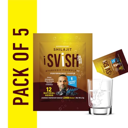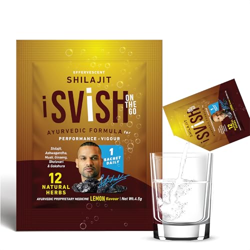 SVISH ON THE GO Himalayan Shilajit | Effervescent Powder | 4.5g (Pack of 5) | Ashwagandha, Musli, Shatavari & Gokshura