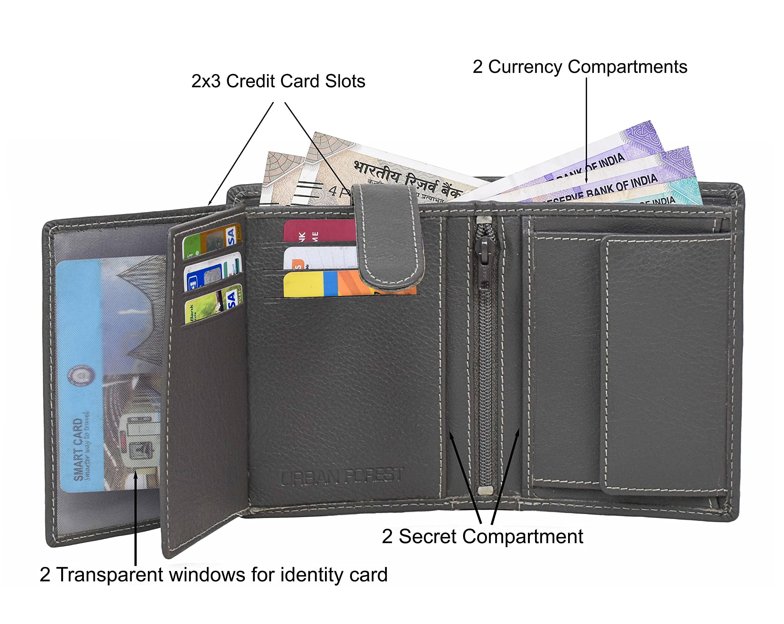 URBAN FOREST Men's Leather Wallet (UBF130GRY1018 Grey)
