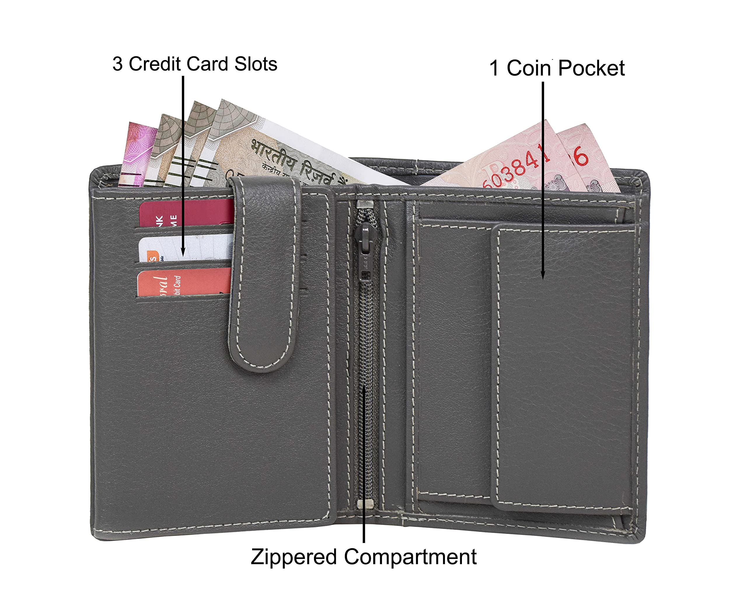 DIWALI GIFTS FOR MEN - This Festive Season Bring a smile on his face by gifting him this absolutely Classy and Robust Grey coloured Leather Wallet for Men.It comes in a perfect Matte Black Box and is the perfect gifting solution for Men and boys of all ag
