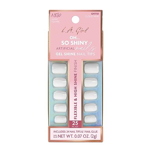 L.A.Girl Oh So Shiny Artificial Nail Tips-Cloud Nine -25 Pc Kit | High Shine Gloss Finish | Long lasting | Full coverage in coat | everyday use | Quick-Drying & Non-chipping |2gm
