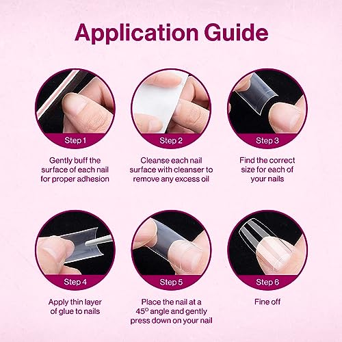 • Kit includes 24 high shine nail tips and 1 nail glue.Comes in two styles: short square or short oval shape