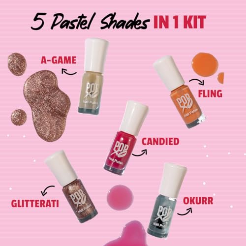 MyGlamm POPxo Makeup Collection Glossy Finish -Mini Nail Kit-Thrivin'-5X3mlThrivin' on self love. Thrivin' is a stunning set of 5 chip-resistant pastel nail polish toppers and bases will give your nails the #GlowUp of your dreams. Always having a set of freshly painted nails is every girl's ideal state of living. While frequent salon visits can be heavy on the pocket there is one fun trick that won't break the bank. Bring the priceless feeling of new nails home with POPxo Makeup Collection's Daydreamin' Mini Nail Kit. It includes 5 nail paint bases and toppers that will help you ace a salon-like manicure in the comfort of your own home. These nail polish bases and toppers have a chip resistant formula and offer a long-lasting wear. They have a high gloss finish and make your digits look oh-so-fab. So are you ready to be your own nail technician?MyGlamm POPxo Makeup Collection -Mini Nail Kit-Queenin' Glossy Finish-5X3ml"Confidence level: queenin' 24x7! Queenin' is a stunning set of 5 chip-resistant red nail polishes that are the perfect match for all your red hot and #spicy manicure moods. Let your sassy self run wild! Always having a set of freshly painted nails is every girl's ideal state of living. While frequent salon visits can be heavy on the pocket there is one fun trick that won't break the bank. Bring the priceless feeling of new nails home with popxo makeup collection's queenin' mini nail kit. This mini nail polish kit includes 5 nail paints in bold shades of red that are sure to make a statement wherever you go. These mini nail polishes have a chip resistant formula and offer a long-lasting wear. They have a high gloss finish and make your digits look oh-so-fab. So are you ready to be your own nail technician? "
