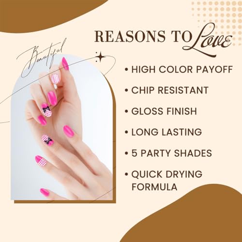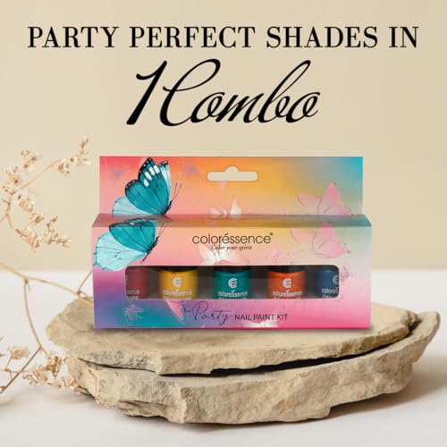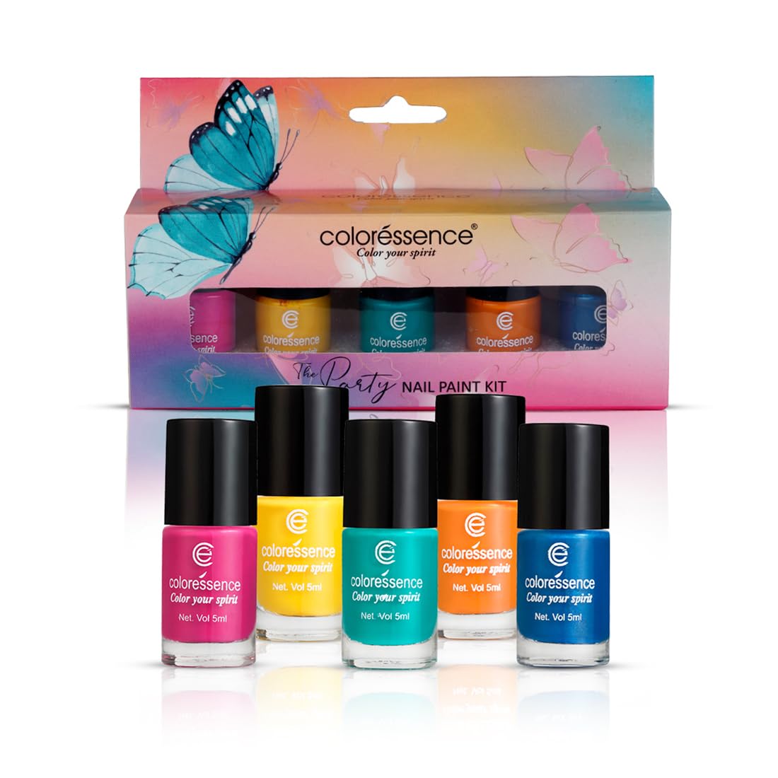 Coloressence Party Nail Paint Kit with Pastel & Nude Shades | Chip Resistant and Quick Dry Nail Paints | Set of 5 Nail Paints
