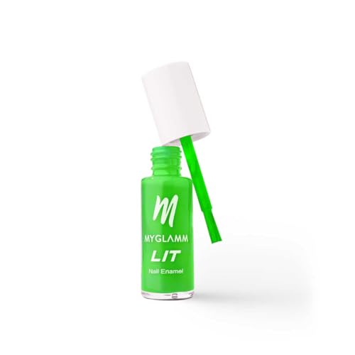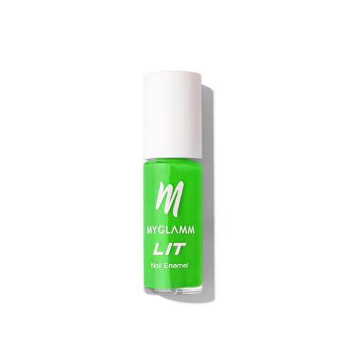 MyGlamm LIT Nail Enamel - FOMO (Bright Neon Green Shade) | Chip Resistant, Long Lasting, High Shine Glossy Nail Polish (7ml)