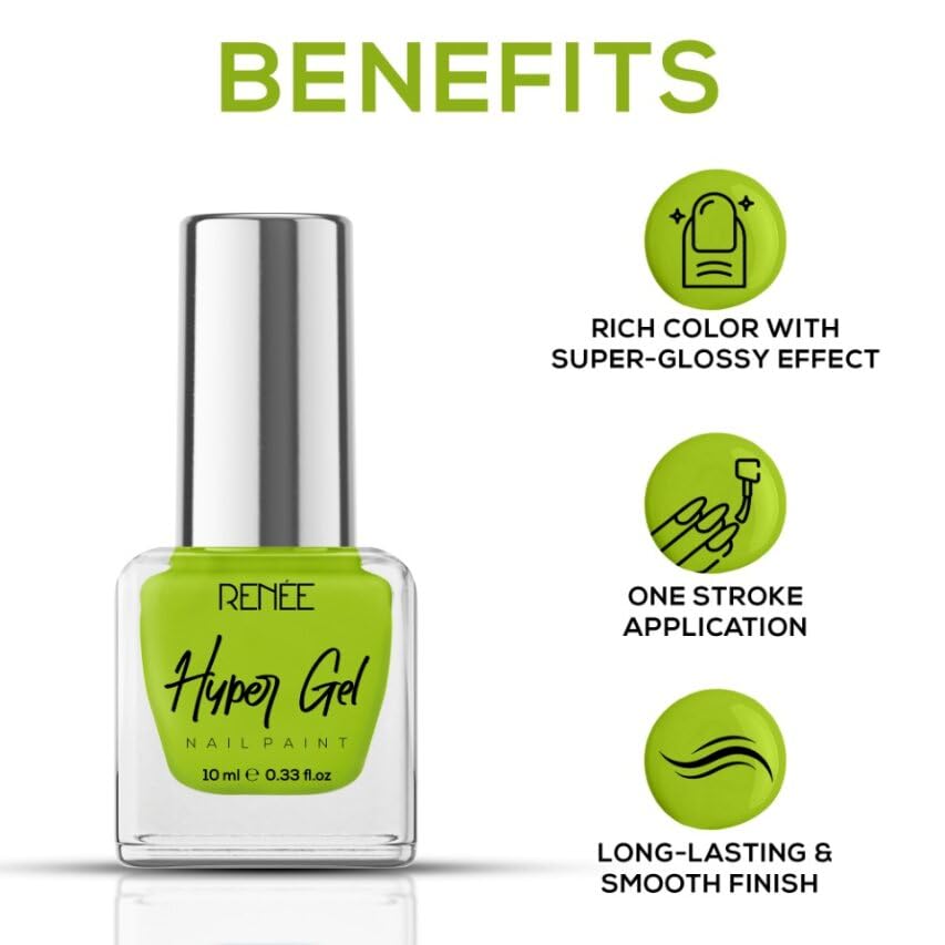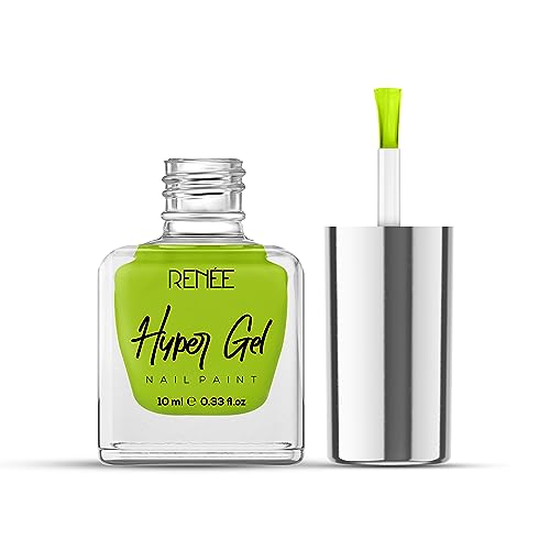RENEE Hyper Gel Nail Paint- Lime Green 10ml | Quick Drying, Glossy Finish, Long Lasting, Chip resisting Formula with High Shine Polish | Acetone & Paraben Free