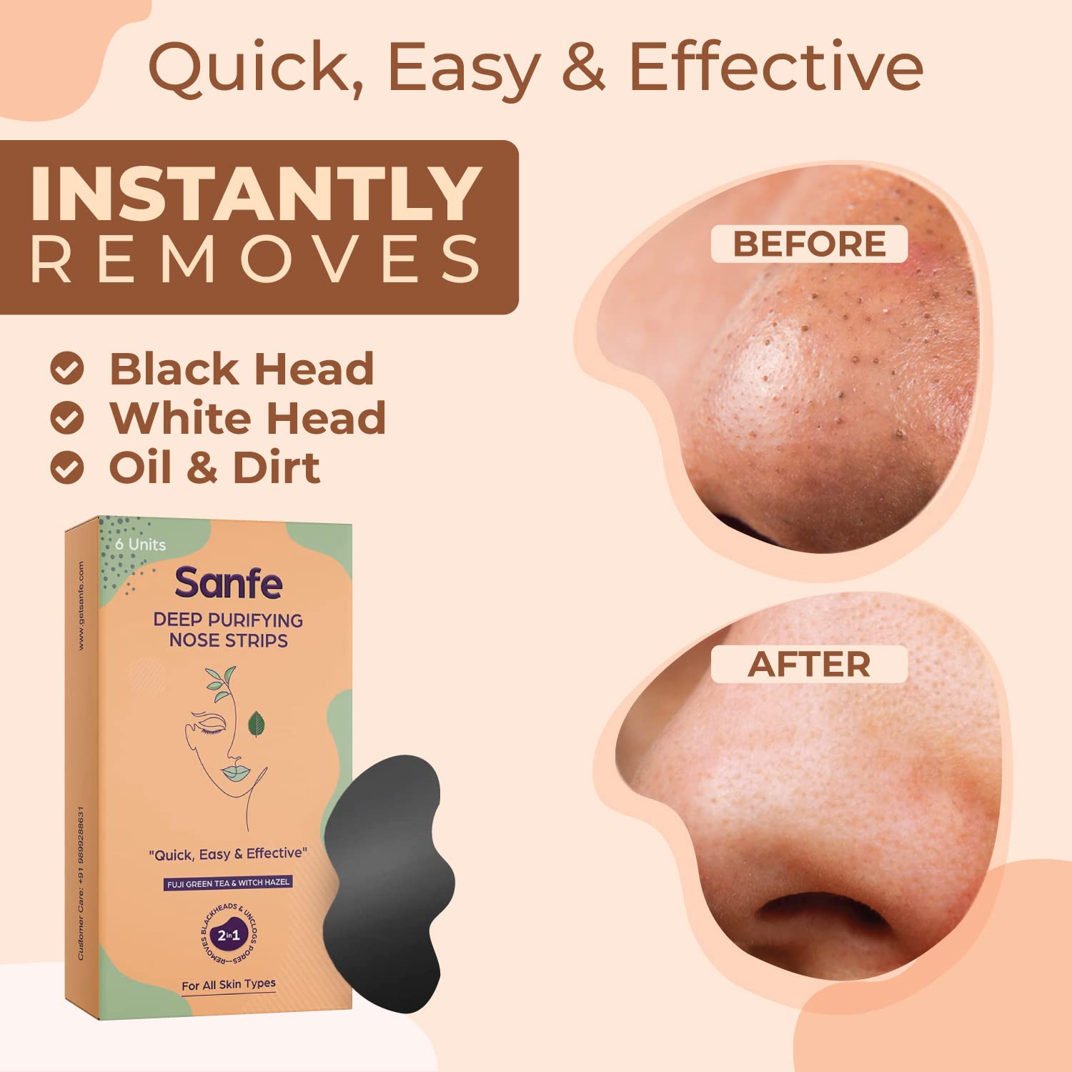 HomeBeautySkin ToolsBlackhead RemoverSanfe Deep Purifying Nose Strips for Women & Men - With Fuji Green Tea & Witch Hazel extracts | Removes Whiteheads | Blackheads and cleanses pores (Pack of 6) | Instant Result