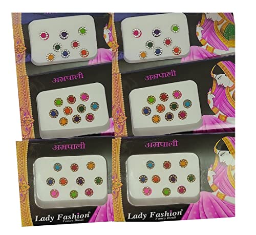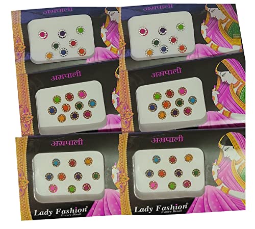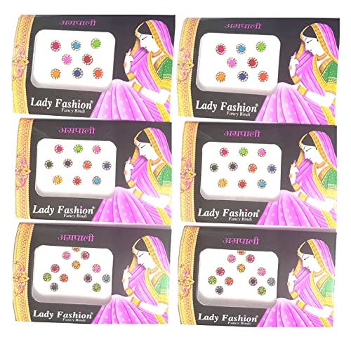 Lady Fashion Multi Color Nug Border Fashionable Bindi Combo of 6 Pcs