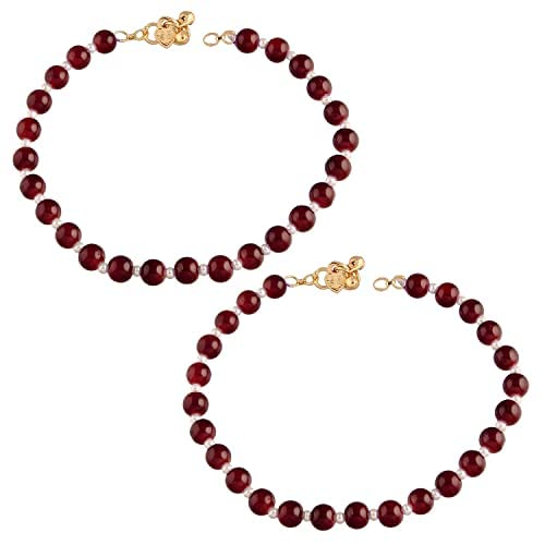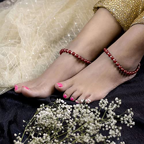 I Jewels Adjustable Pearl Beads Payal Anklets Jewellery for Women & Girls (A052)