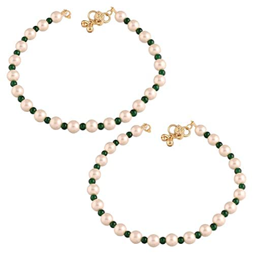 I Jewels Adjustable Pearl Beads Payal Anklets Jewellery for Women & Girls (A052)