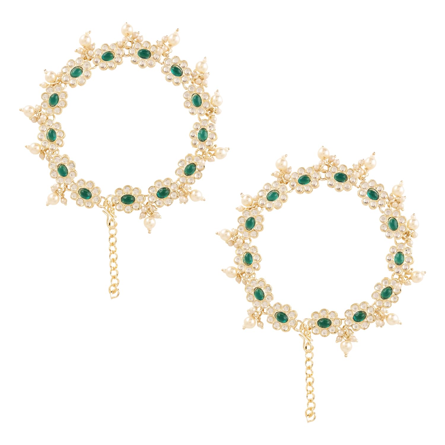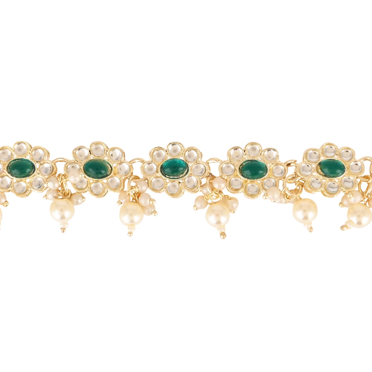 I Jewels Traditional Gold Plated Adjustable Kundan Pearl Payal Anklets Jewellery for Women & Girls (A064G)