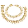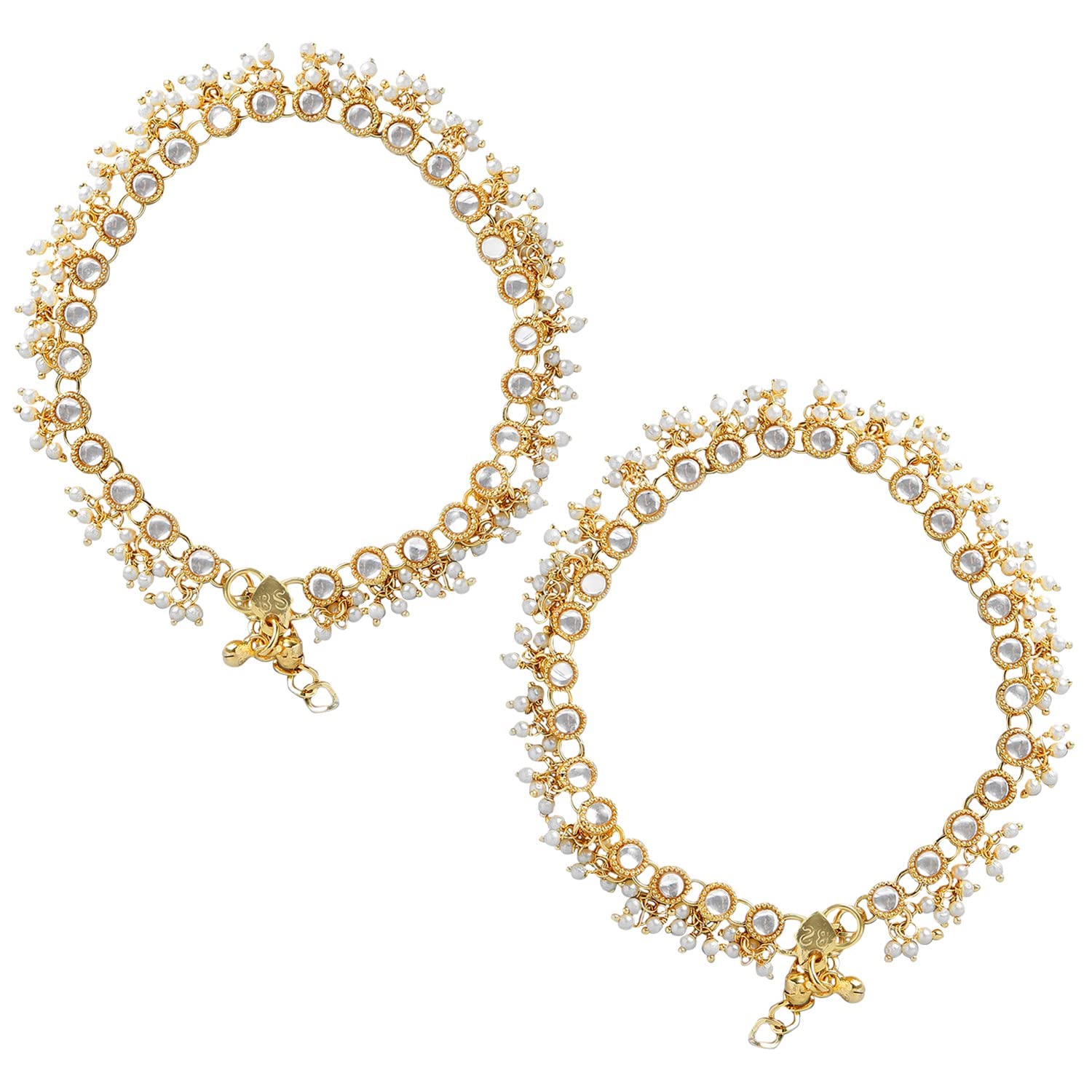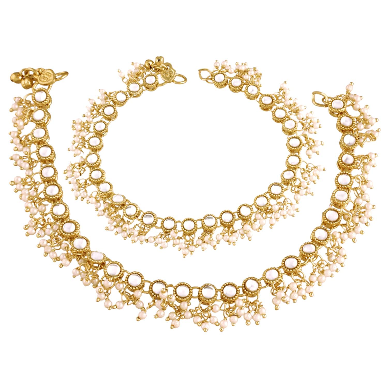 I Jewels Traditional Gold Plated Encased With Faux Kundan & Pearls Adjustable Pair Of Bridal White Anklets Payal For Women (A044W)
