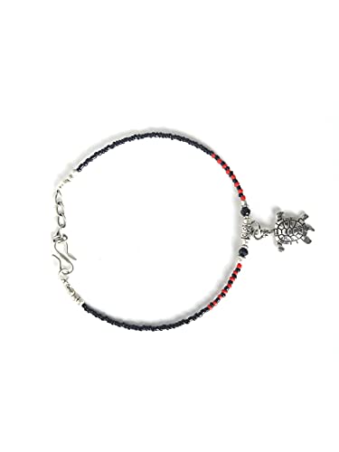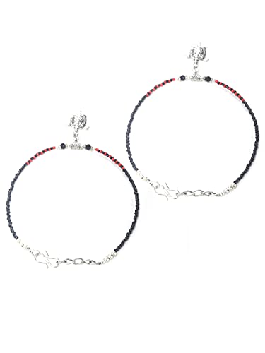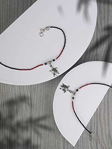 Priyaasi Red Black Stones Studded Silver ColorOxidized Anklets