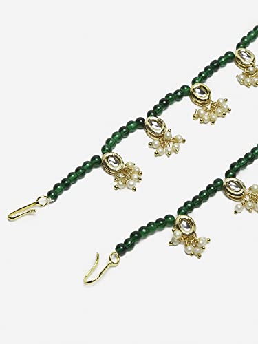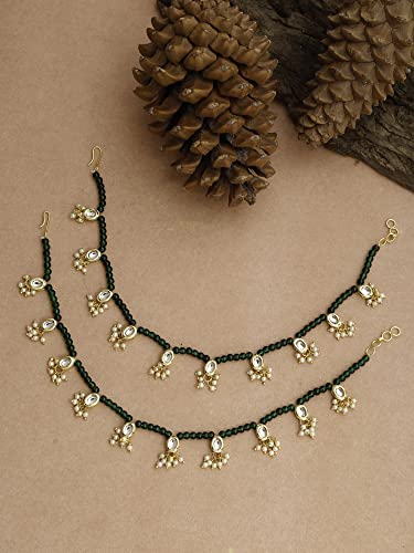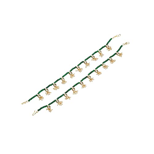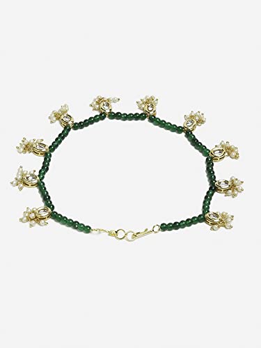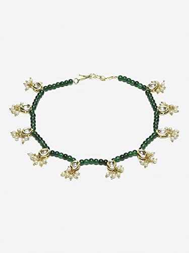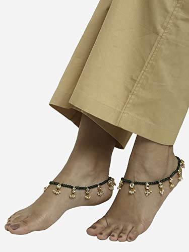 Ruby Raang Women's Mixed Metal Artificial Kundan anklets - Traditional Jewellery Set for Women (Green)