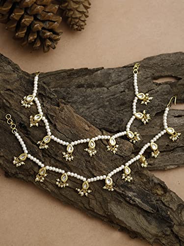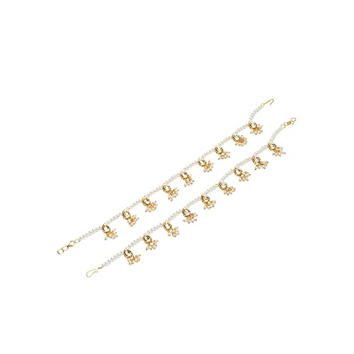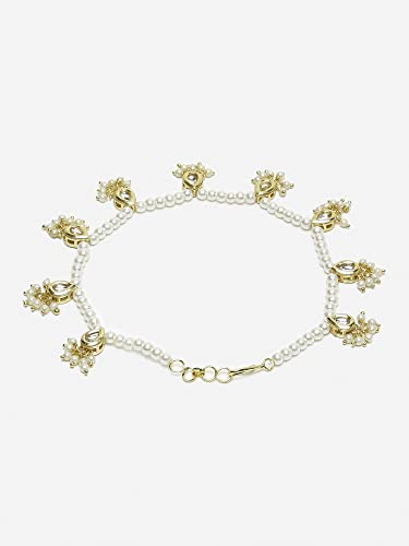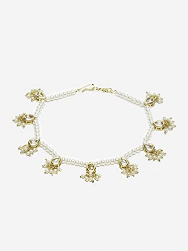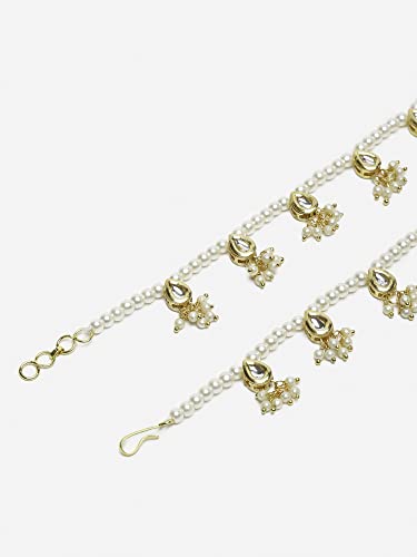 Ruby Raang Women's Mixed Metal Artificial Kundan anklets - Traditional Jewellery Set for Women (White)