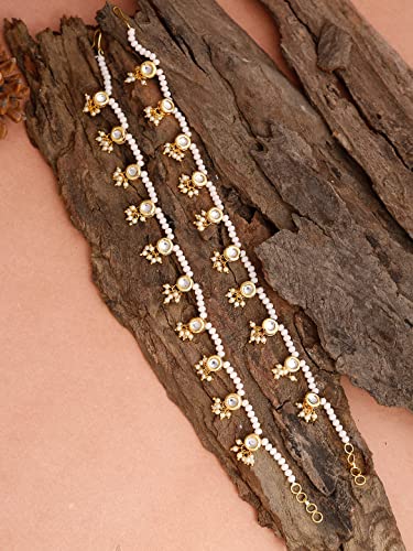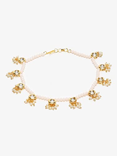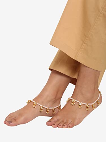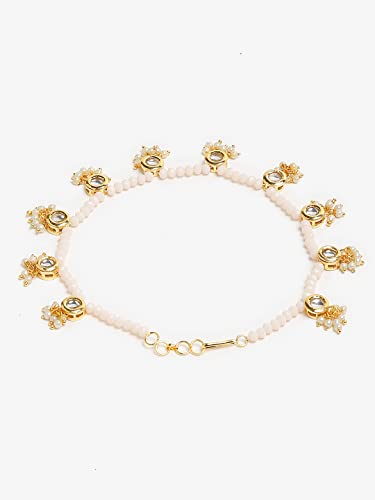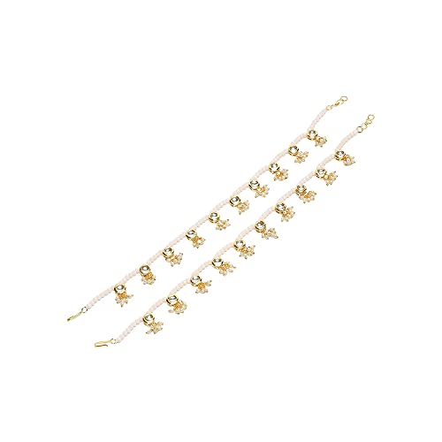 Ruby Raang Women's Mixed Metal Artificial Kundan anklets - Traditional Jewellery Set for Women (White)