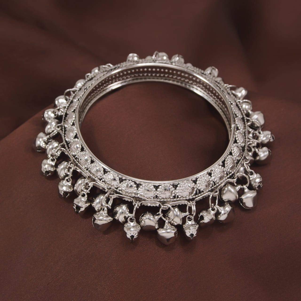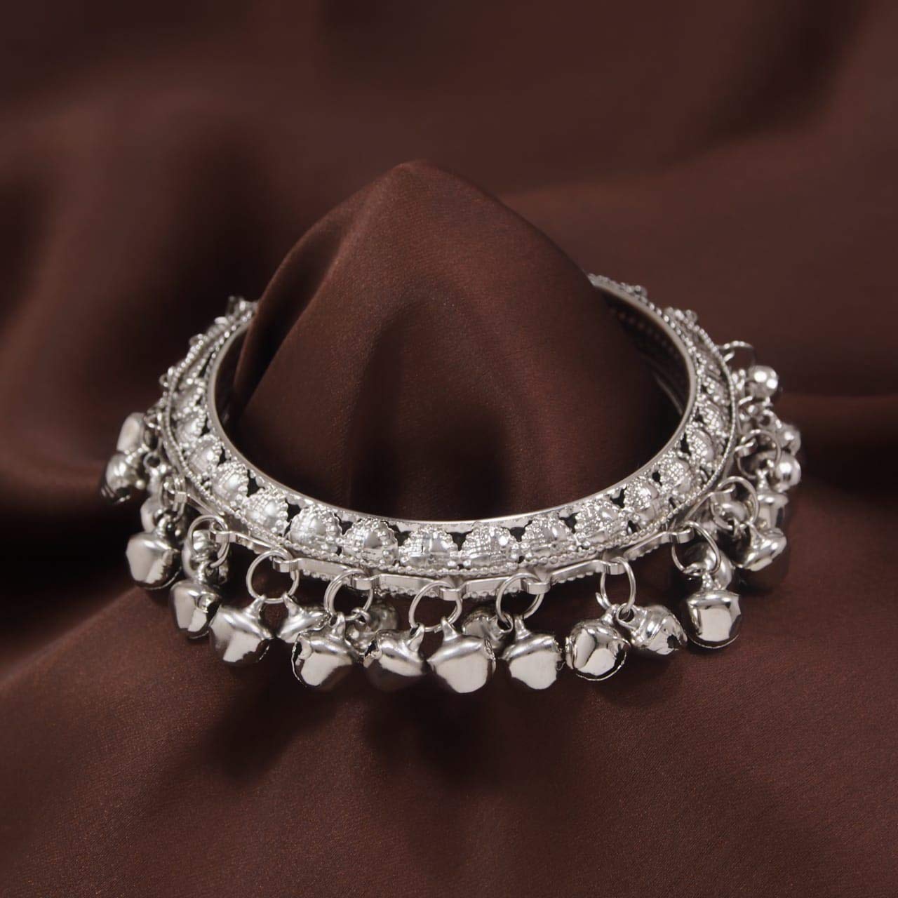 I Jewels Navratri Gold & Silver Plated Intricately Designed Handcrafted Bangles/Kada Embellished with Ghungroo (ADB424) (Pack of 1)