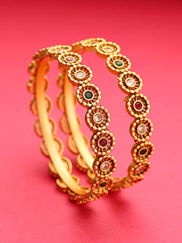 Priyaasi Gold-ColorTraditional Bangles with Coloured Stone for Wome(Multi and Gold)