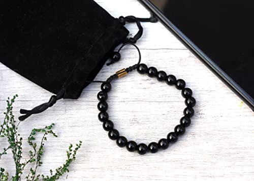 Original, certified Onyx bracelet with 18 and 22 beads (two sizes). Attractive glossy beads, neatly woven, with strong elasticated thread for good grip. These Black gemstones have classy look which compliments your personality and goes with everyday style. This bracelet comes in an attractive Velvet string pouch which makes easy to keep it safe.