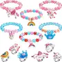 HomeFashionBraceletPATPAT Unicorn Bracelet for Kids Girls Jewelry Set Colorful Shiny Crystle Rainbow Unicorn Beaded Bracelet Hand with Girls Finger Rings,for Gift (Multi) - 12 Pcs