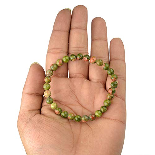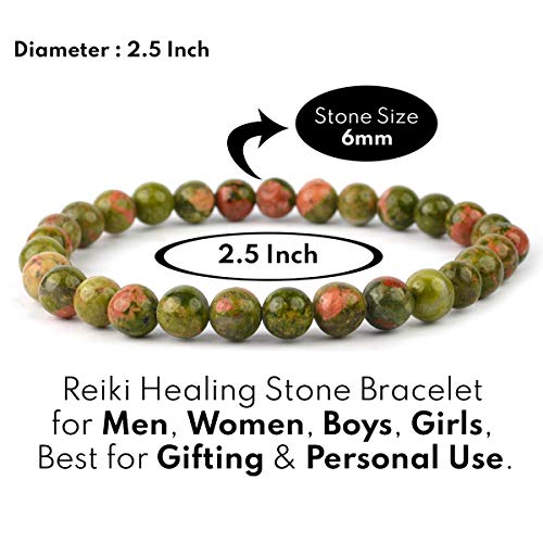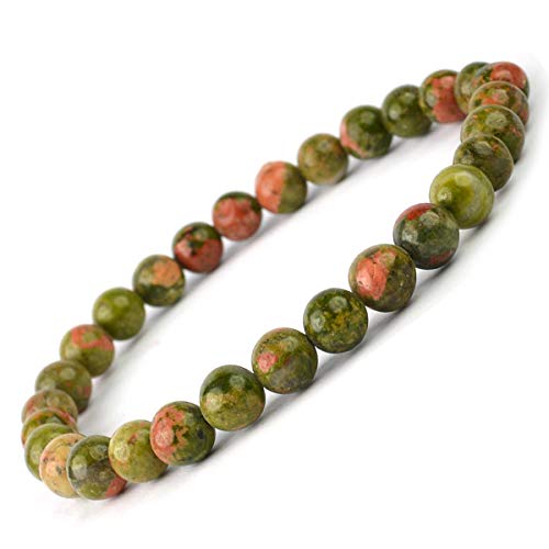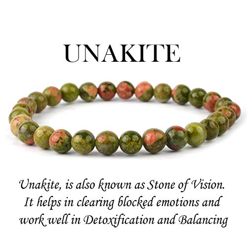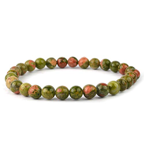Natural Unakite Bracelet Crystal Stone 6mm Beads Bracelet Round Shape for Reiki Healing and Crystal Healing Stone (Color : Green)