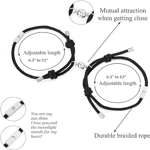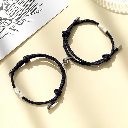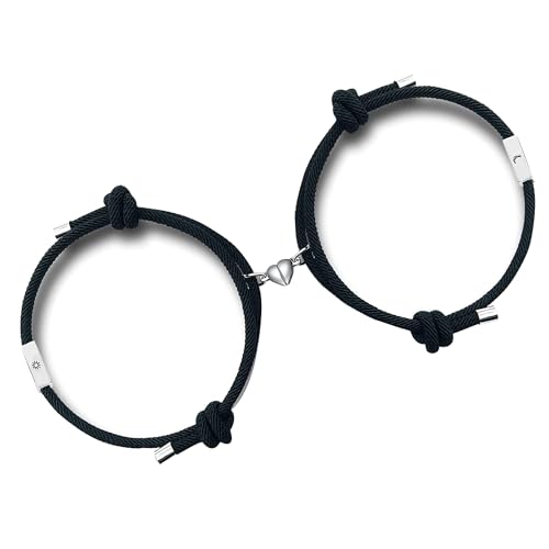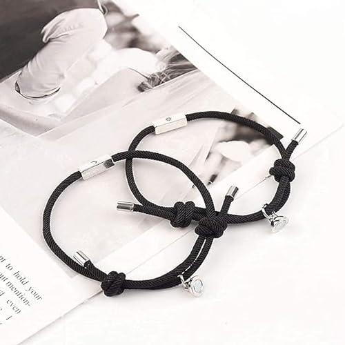 Fashion Frill Couple Bracelets Stainless Steel Heart Shaped with Sun and Moon Attraction Matching Bracelet For Men Women Love Gifts, One Size, Thread, No Gemstone