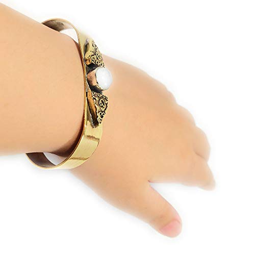 Gifts and Fashion brings you fashion jewellery for all occasions.This trendy golden bracelet has a geometric design and is adjustable according to your wrist size. It is studded with white imitation moonstone. Size: free sizeCare InstructionsHandle with love and careKeep away from chemicWipe with a soft dry cloth after wearingStore in an airtight box