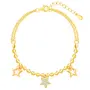 The Inspiration:The Golden Twinkle Star Bracelet is inspired by childhood so deeply enlightened by rhymes and storytelling - this one is for our twinkle twinkle little star!The Design:The Golden Twinkle Star Bracelet is simplicity at its best with a golden chain like design and the placement of three zircon embellished stars along the string. AAA+ Quality Zircon Stones Sterling silverwith Gold plating and 925 hallmark Charm: 70 mm; Length: 16 cm+ 3 cm Adjustable Rhodium finish to prevent tarnish Comes with the GIVA Jewellery kit and authenticity certificate Styling Tips:Wear a black halter neck little black dress and add a little bling to it with this bracelet!