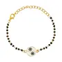 Embrace the fusion of tradition and contemporary style with the I Jewels Gold Plated Stylish Adjustable Stones Studded Pendant Hand Wrist Mangalsutra Bracelet. Designed specifically for women this bracelet captures the essence of a mangalsutra symbolizing love commitment and marital bliss in a modern and fashionable form. Adorning the bracelet are beautiful stones meticulously studded along its length. These stones add a mesmerizing sparkle and allure enhancing the bracelet's overall charm. Their brilliant colors and precision-cut facets catch the light creating a captivating visual display. Crafted with exquisite craftsmanship this bracelet showcases a radiant gold-plated finish that exudes sophistication and elegance. The adjustable feature ensures a comfortable fit for any wrist size allowing you to wear it with ease and confidence.