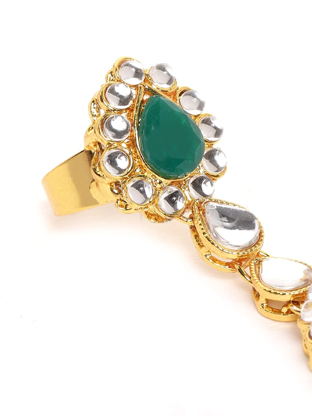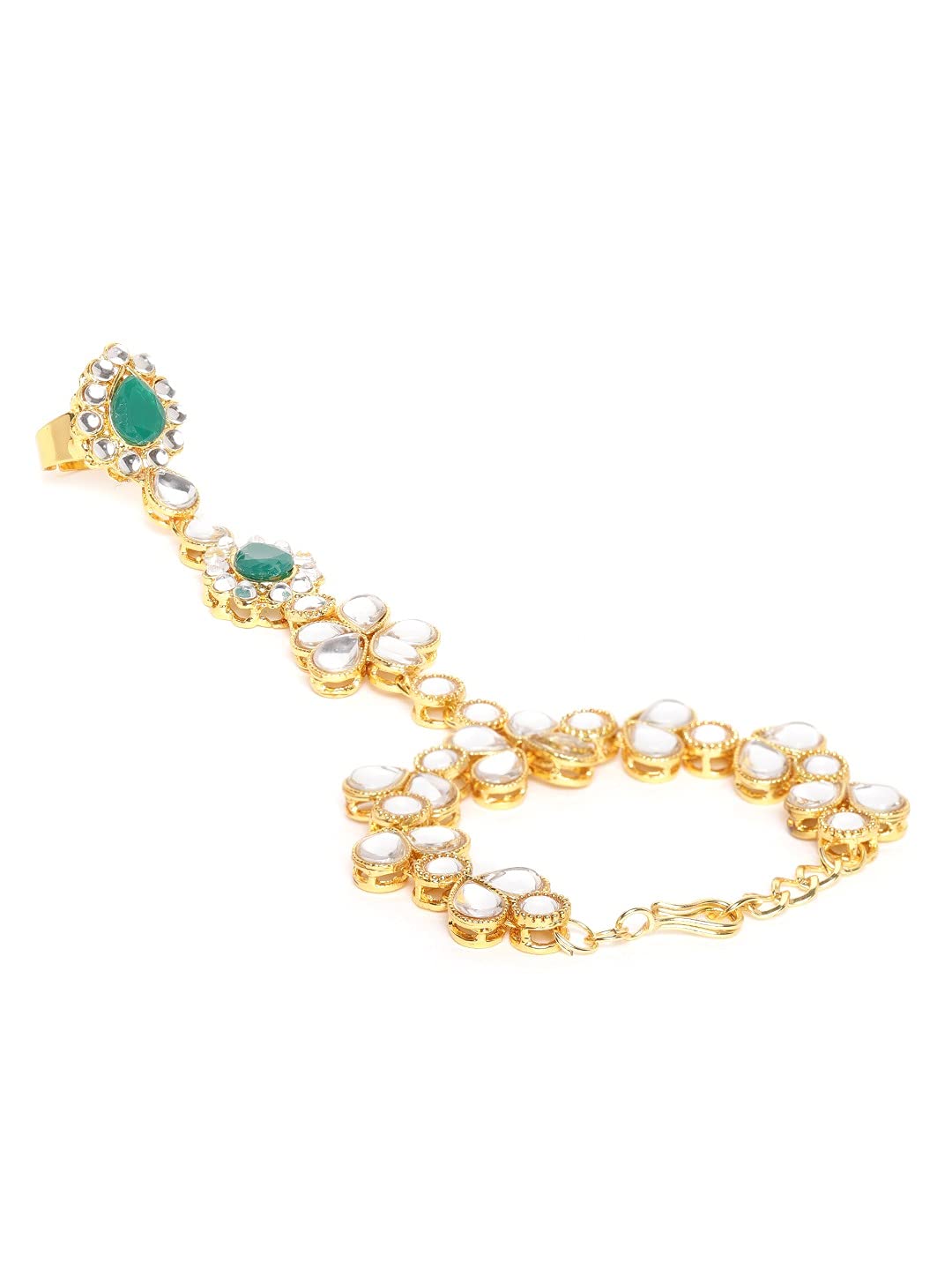 I Jewels Traditional Gold Plated Kundan Haath Phool/Panja/Adjustable Bracelet with Ring for Women (PIJ021G) (Pack of 1)