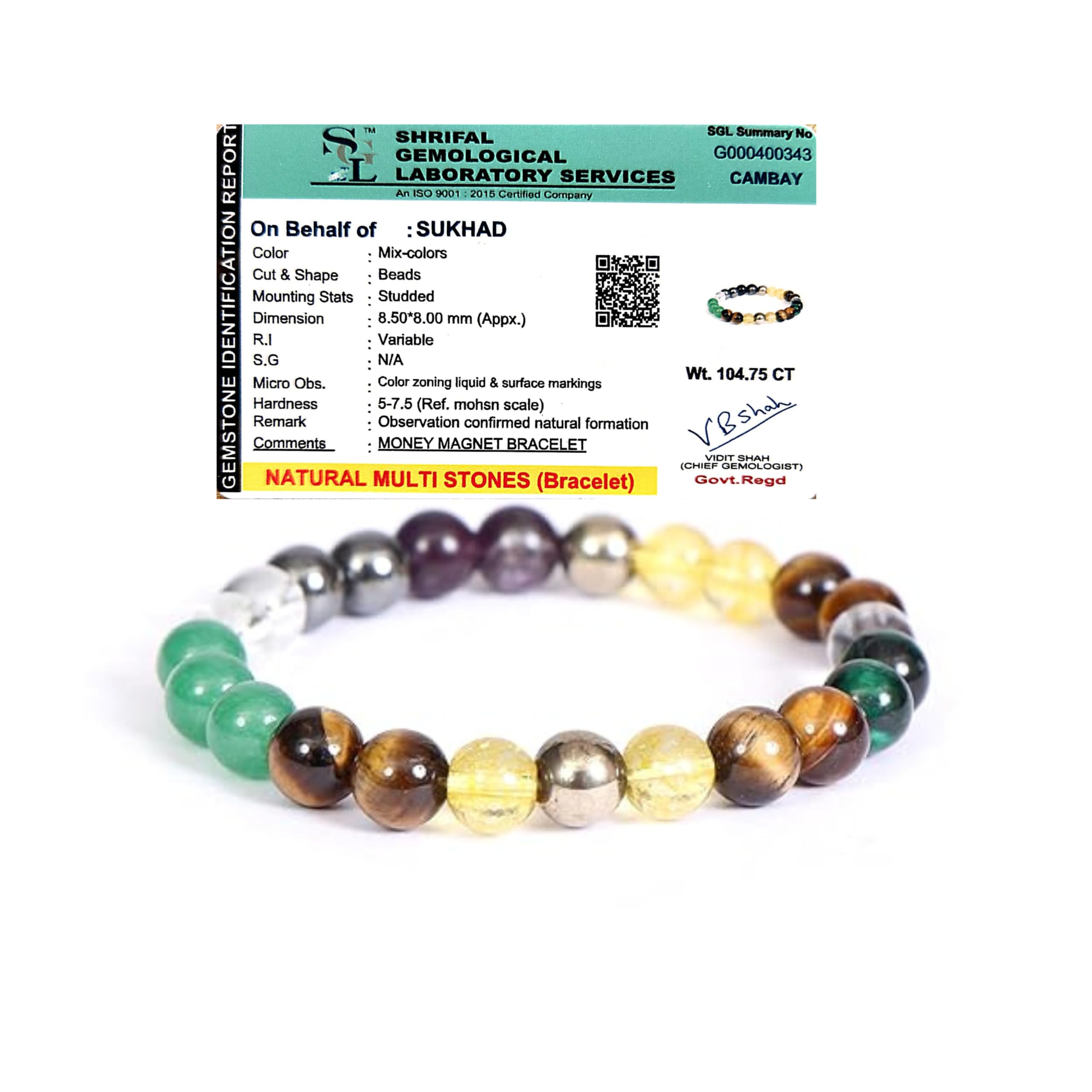 HomeFashionBraceletMoney Magnet Bracelet Pyrite Green Aventurine Citrine Hematite Clear Quartz Green Tiger Eye Amethyst Crystal Healing Natural Gemstone Bracelet For Men & Women Bead Size 8 Mm Multi Color