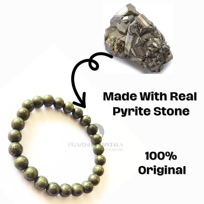 PRAYOSHACRYSTALS Pyrite Bracelet 8 mm Stone Bracelet for Reiki Healing and Crystal Healing Stones Crystal Energized Stone AAA Bracelet with Certificate, Golden, 6.5 cm, Crystal, Pyrite Stone