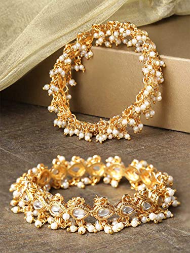 Priyaasi Brass Gold Plated and Kundan Bangle Set for Women & Girls (Gold)
