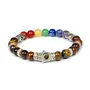 Stretchable Elastic Natural Crystal Stone Tiger Eye with 7 Chakra Bracelet