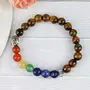Stretchable Elastic Natural Crystal Stone Tiger Eye with 7 Chakra Bracelet | Diameter : 2.5 Inch.| Stone Size – 8 mm Beads | Shape - Round. Charged By Reiki Grand Master & Vastu Expert