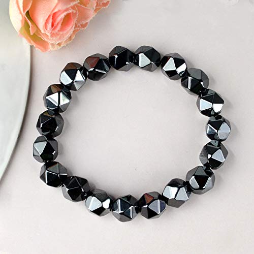 Natural Hexagon Hematite Bracelet Crystal Stone 10mm Diamond Cut Beads Bracelet for Reiki Healing an