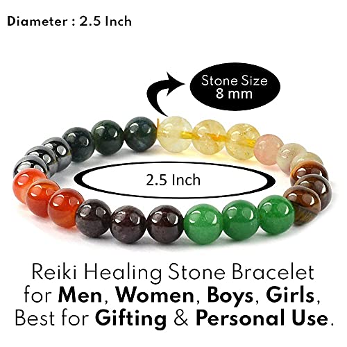 Reiki Crystal Products Abundance Bracelet Combinatin Bracelet 8 mm Round Bead Bracelet for Unisex (Color : Multi) Charged by Reiki Grand Master & Vastu Expert Dr. Amritpal Singh