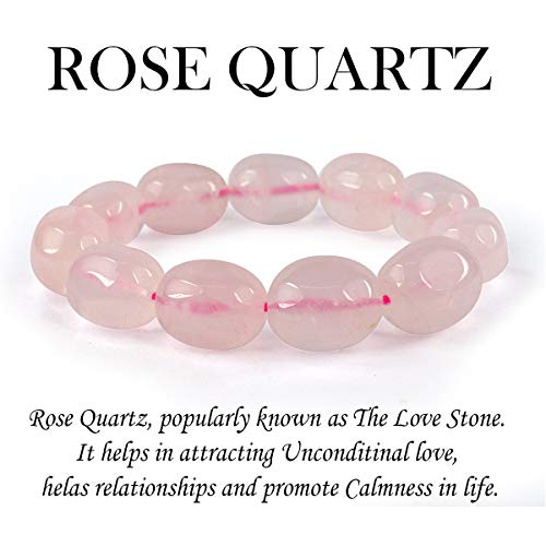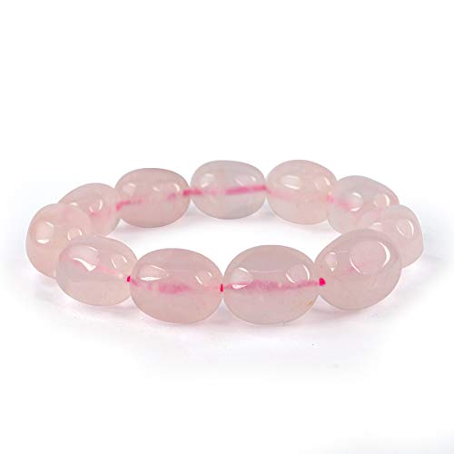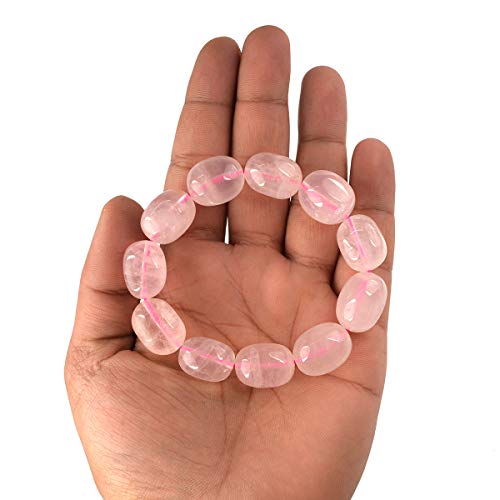 Natural Rose Quartz Bracelet Crystal Stone Big Tumble Bead Bracelet for Reiki Healing and Crystal He