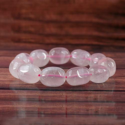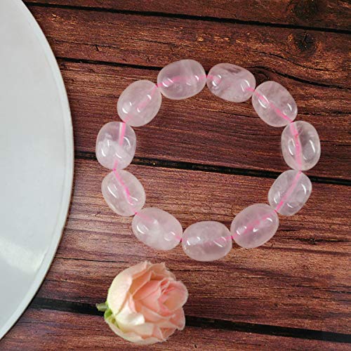 Natural Rose Quartz Bracelet Crystal Stone Big Tumble Bead Bracelet for Reiki Healing and Crystal Healing Stones (Color : Pink)