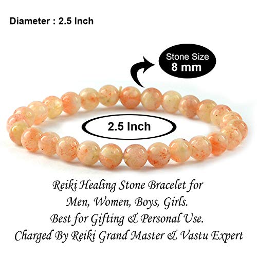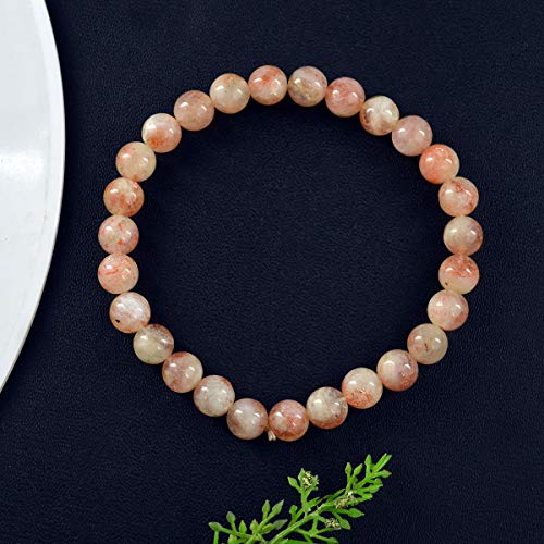 Natural Sunstone Bracelet Crystal Stone 8mm Beads Bracelet Round Shape (Color : Peach)