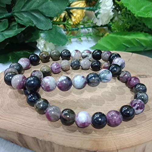 Crystal Cave Exports Natural Watermelon Tourmaline Stone Bracelet 8 MM for Release mood relief and Mind Fresh Positive energy protection luckGift Bracelet Watermelon Tourmaline is a combination of pink and green Tourmaline that soothes the heart and counters mood relief or resentment. Used in meditation it assists with calming the mind and the emotions allowing us to release Mind Fresh.