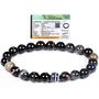 REBUY Black Metal 8 mm Sulemani Hakik Matte Finish Stone Bracelet for Men and Women