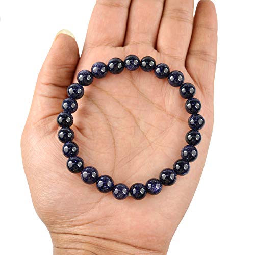 Stretchable Elastic Handmade Natural Crystal Stone Blue Goldstone Bracelet